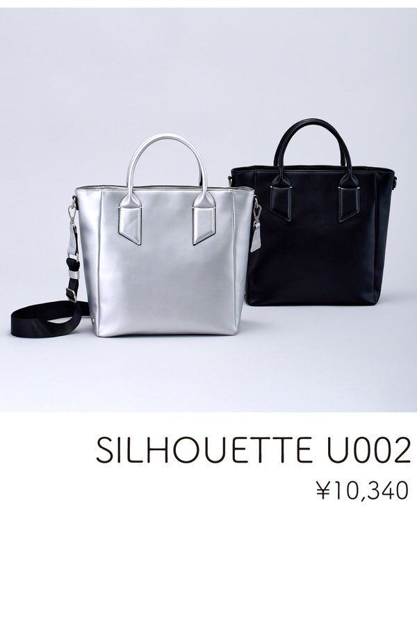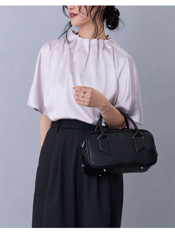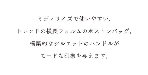 程よいツヤ感が上品で、構築的なハンドルがモードな印象を引き立てます。