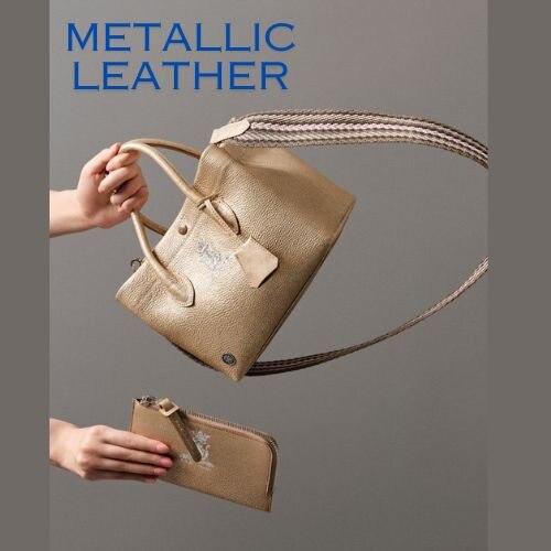 メタリックなカラーリングと革の表情が絶妙にマッチした、シックなマテリアルです。