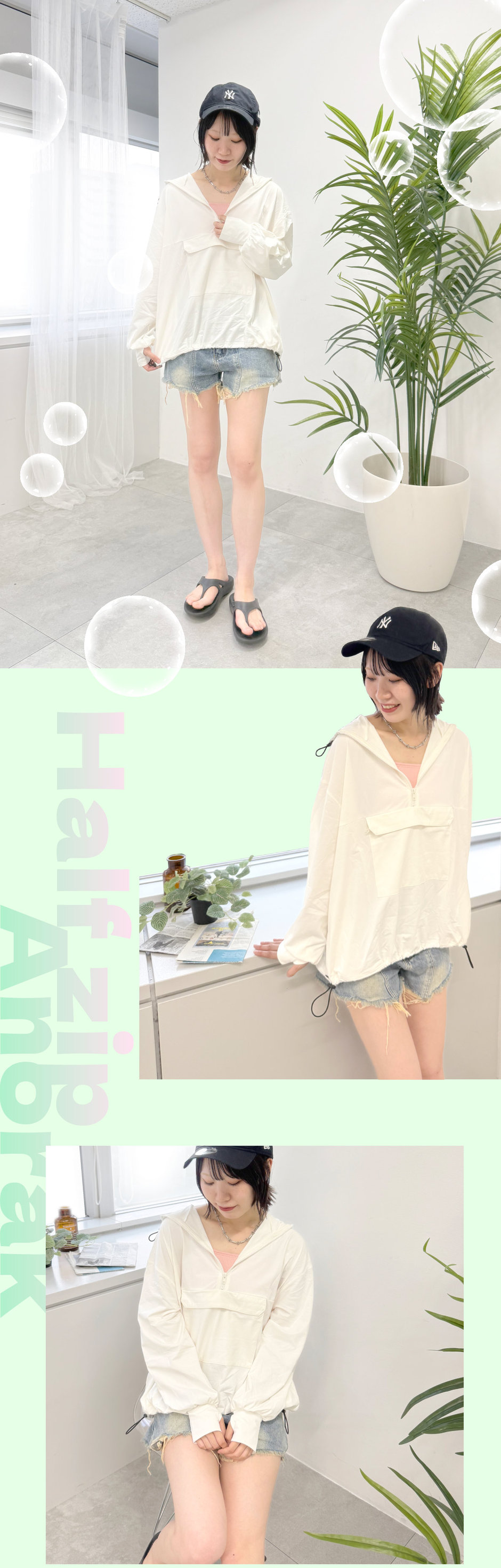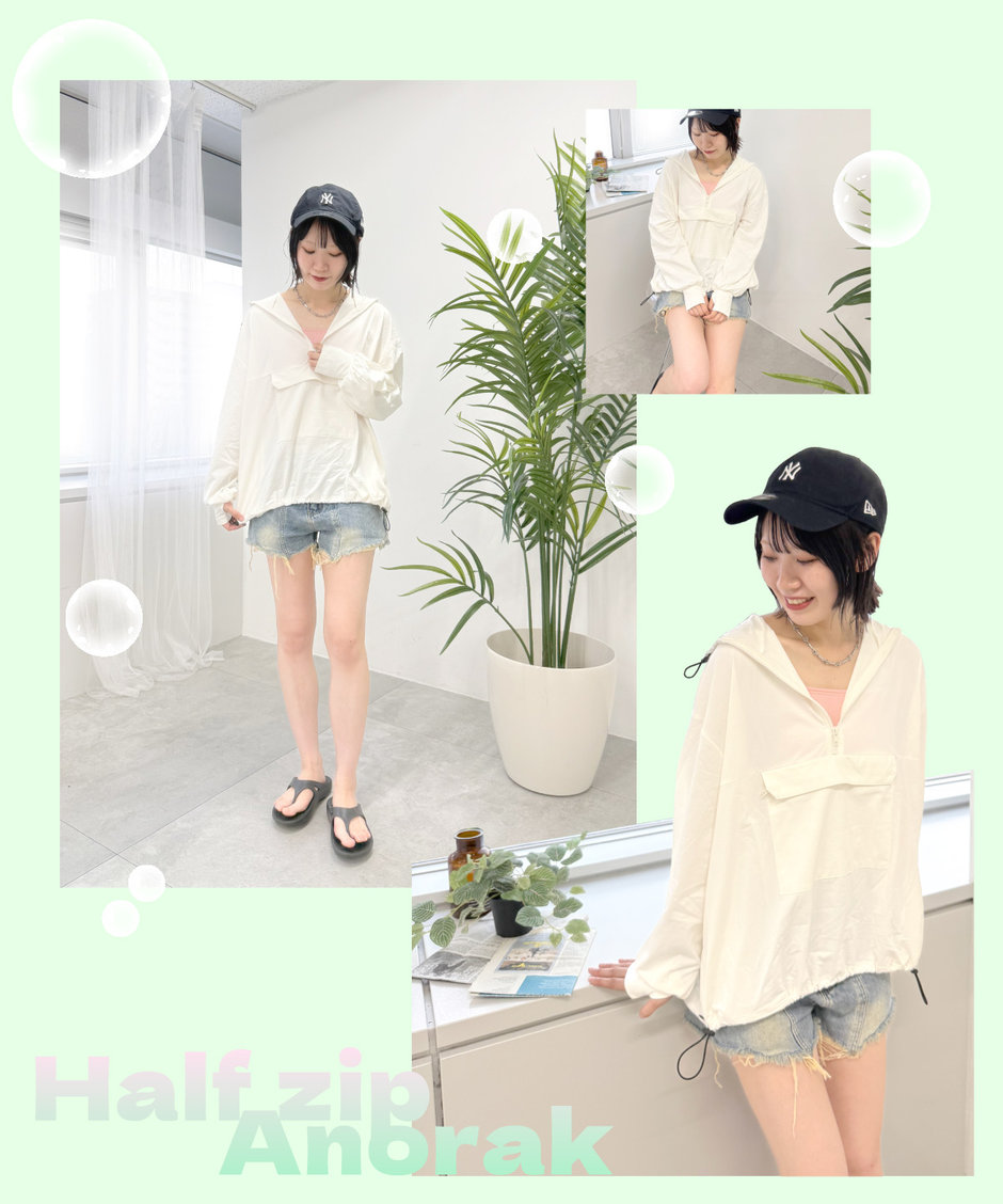 トレンド感あるハーフジップアノラックパーカータイプ。