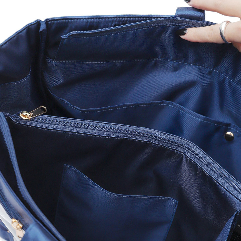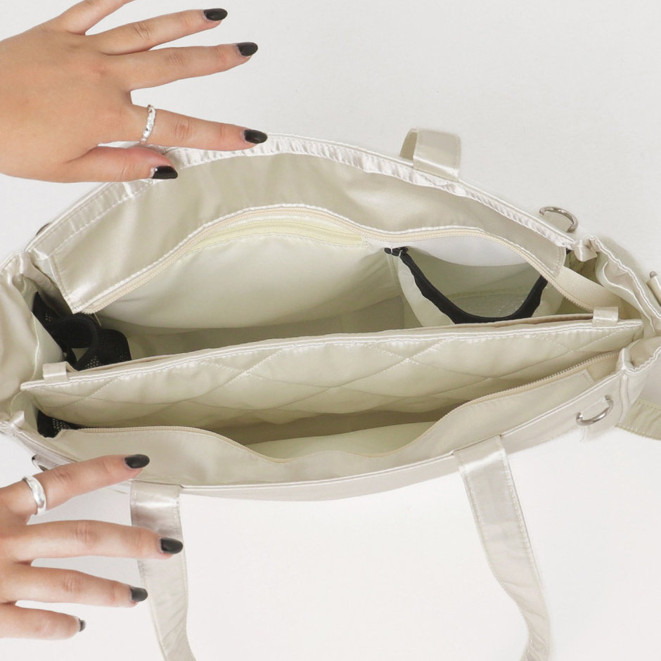 中央の仕切りポケットは取り外しもでき、荷物に合わせて4部屋→1部屋など幅広く使用できる!