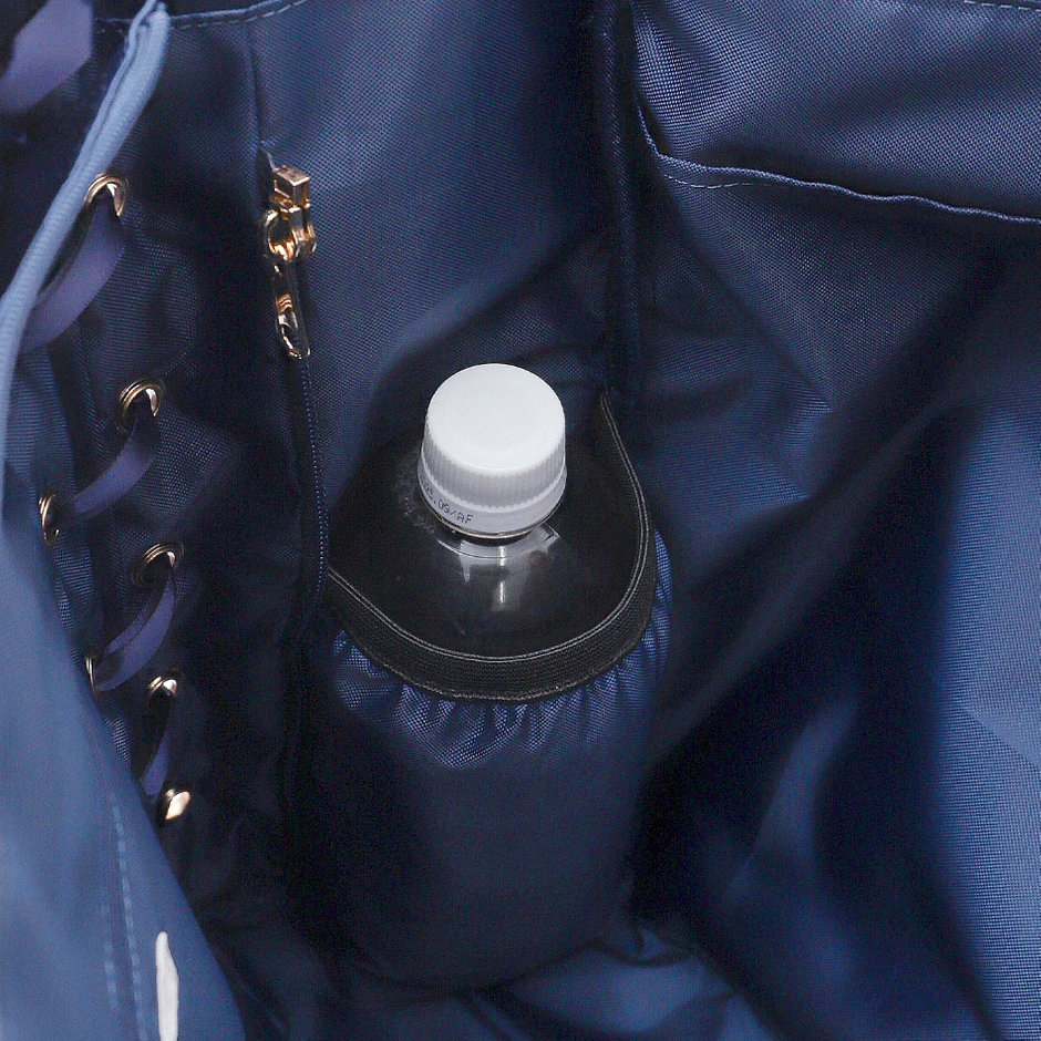 保冷ドリンクポケットや、メッシュポケット、小分けポケット等の収納が充実!