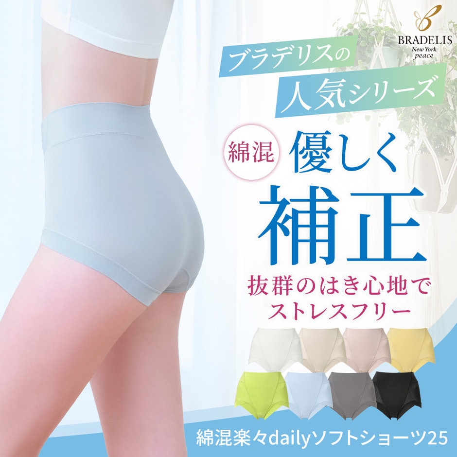 【BRADELIS NewYork peace】綿混楽々dailyソフトショーツ25 補正下着 深め ヒップアップ お腹スッキリ