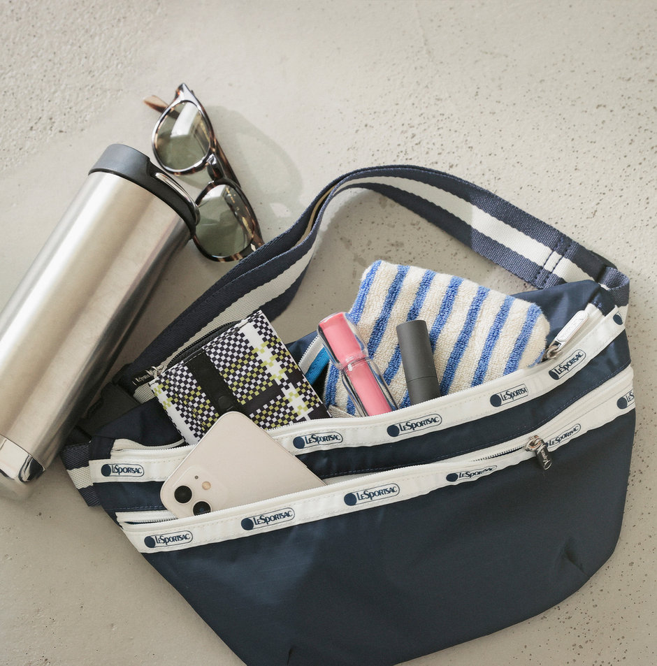 ご近所やサイクリング時はボディバッグで軽やかに!タオルや貴重品などは2つの収納スペースに仕分けして収納できます。