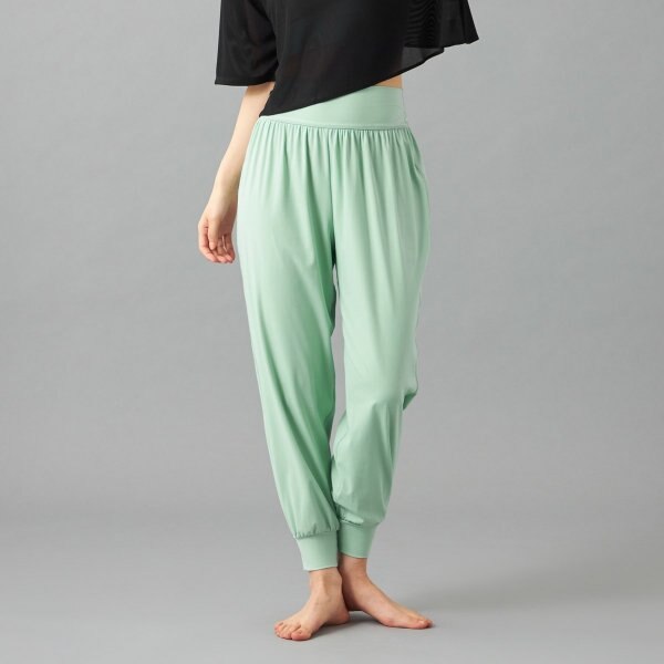 レギンス感覚ではける美脚シルエットのタイトジョガーパンツ。レッスンはもちろんデイリーでも活躍間違いなしの一本。