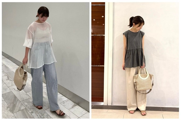 シャツスタイルで涼しさがプラスされて夏のカゴバッグにピッタリです◎