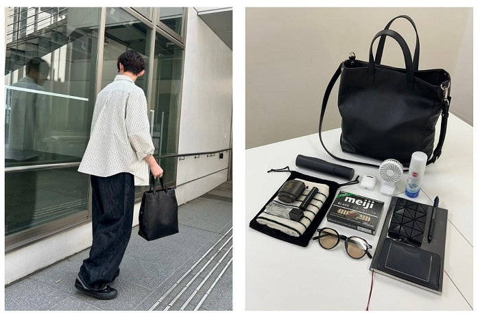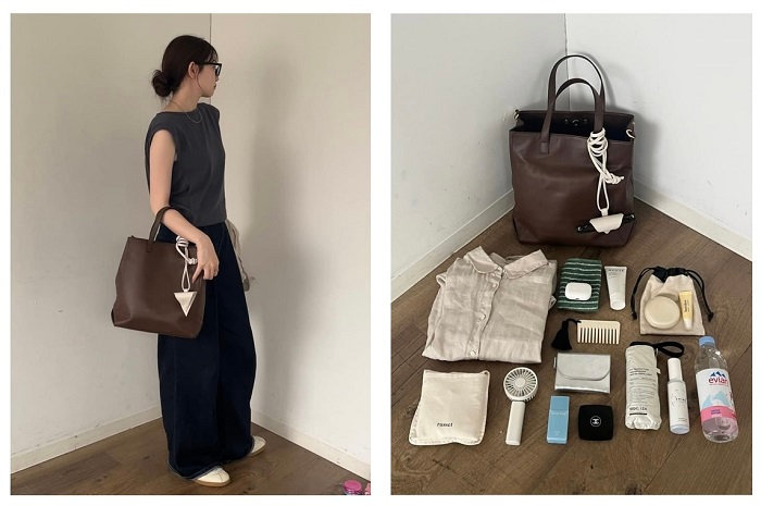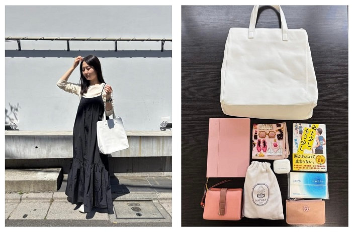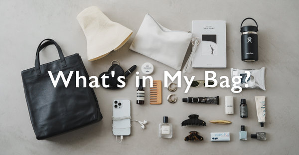 スタッフのバッグの中身をスタイリングと一緒にご紹介。