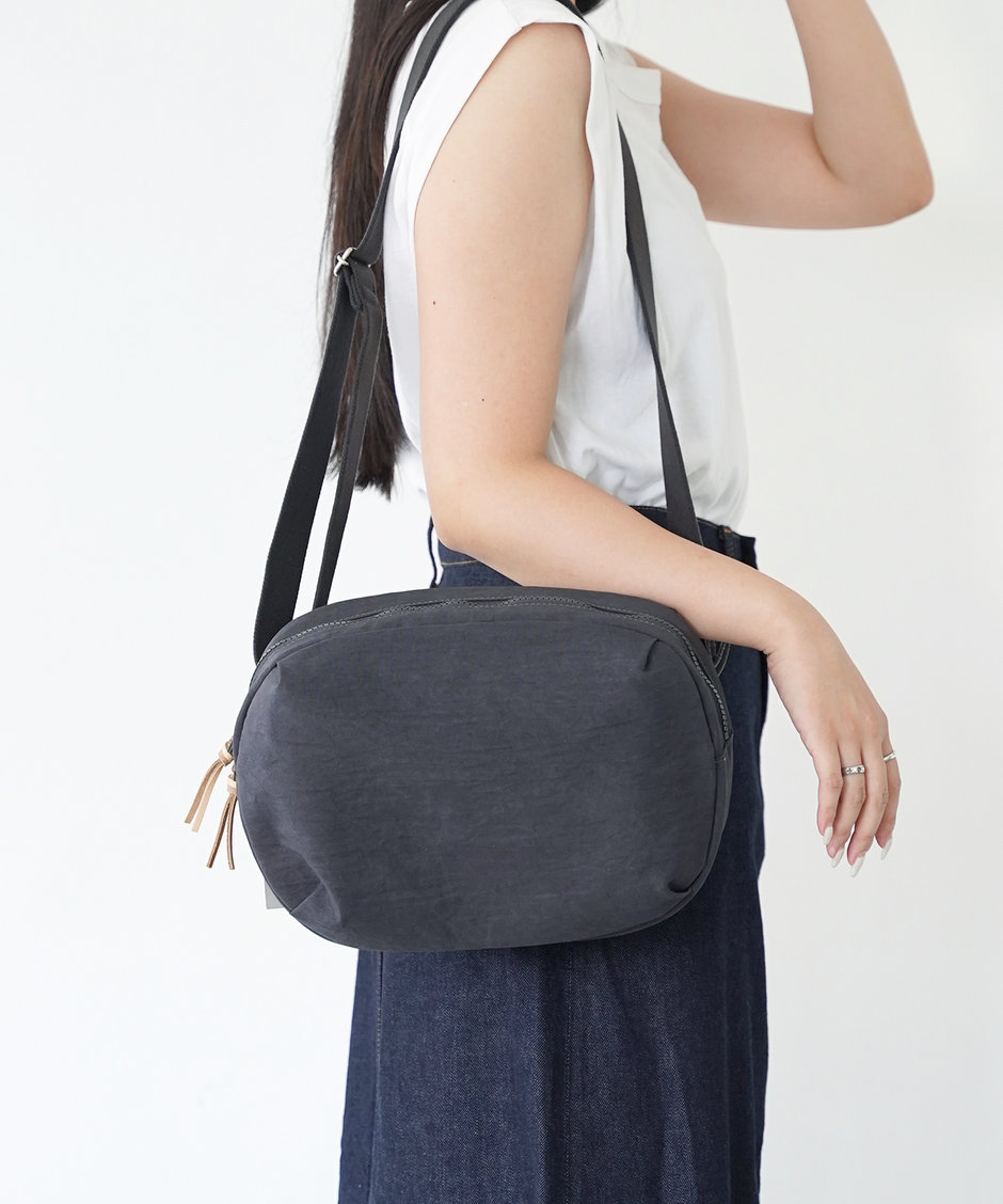 外出のお供といえばの、ナイロンボディバッグ。