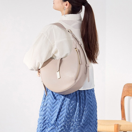 トレンド感のあるラウンドシルエットが特徴のハンドバッグ。