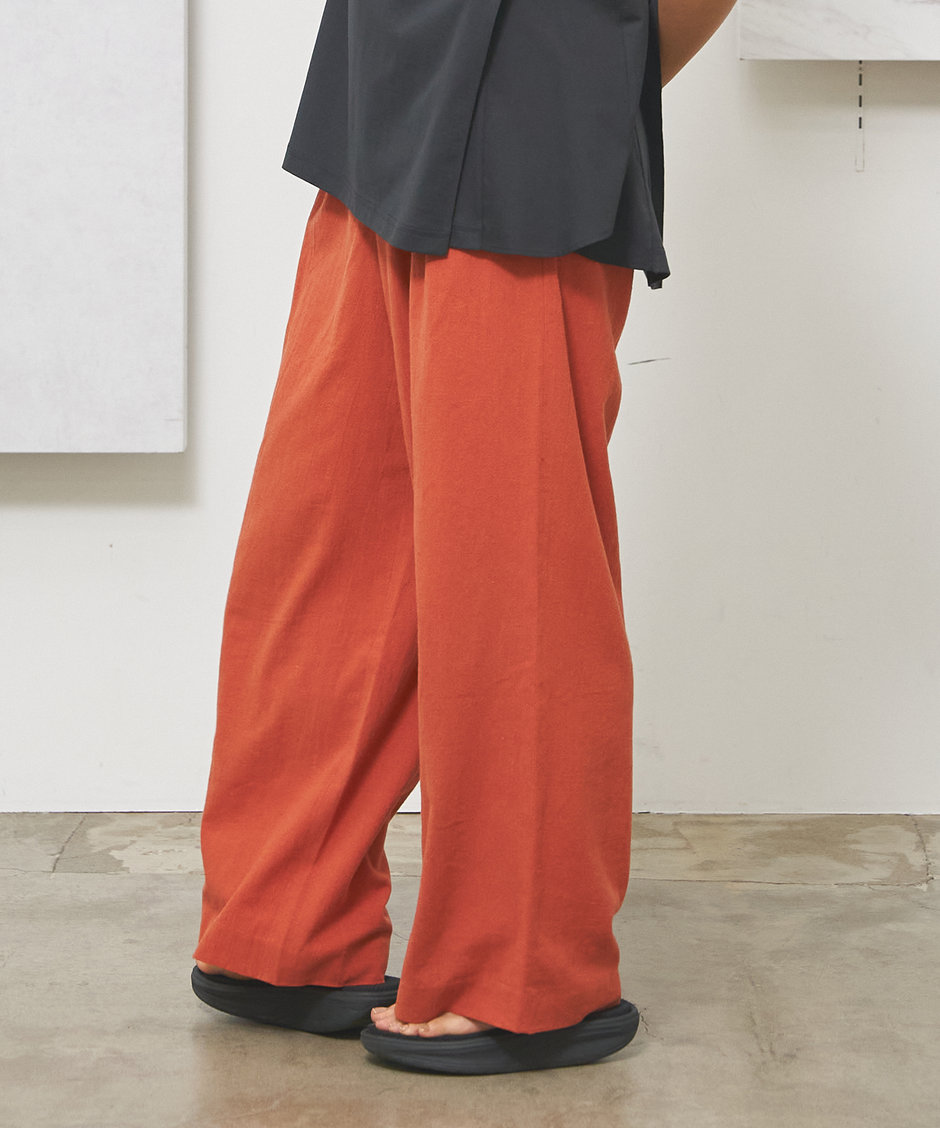 イージーな履き心地と、サラッとした肌触りのワイドパンツ。