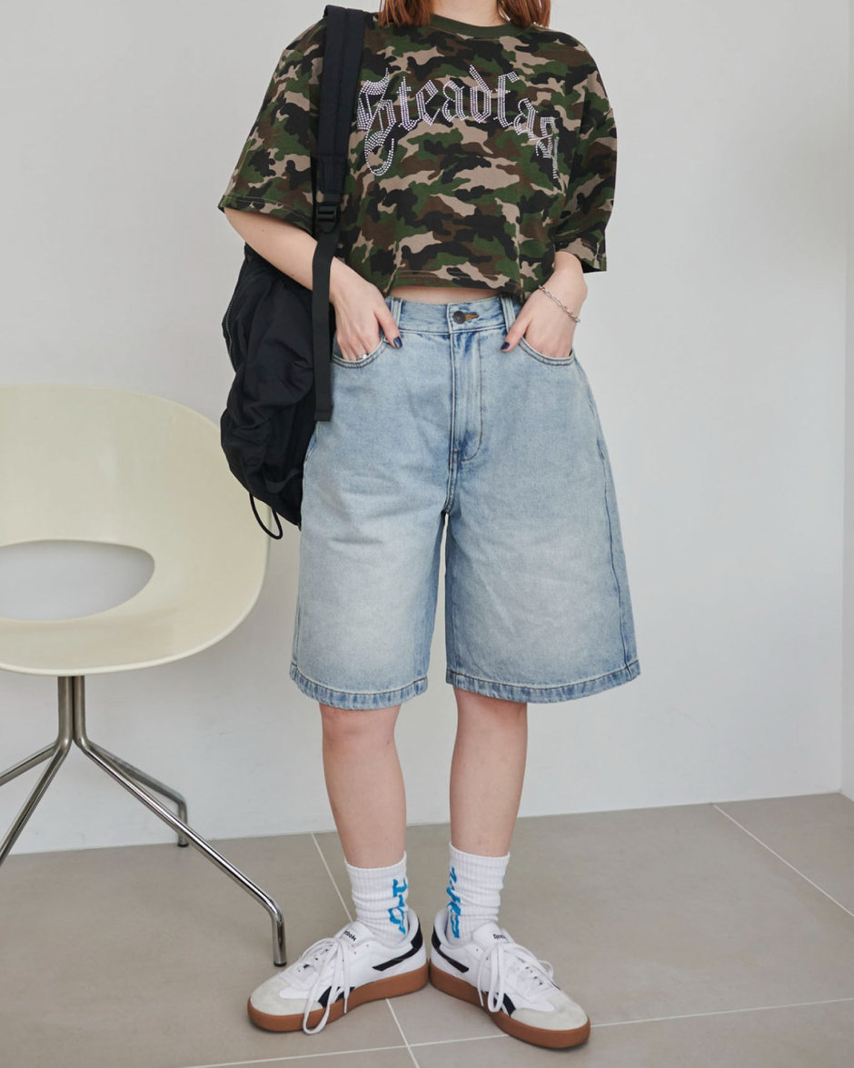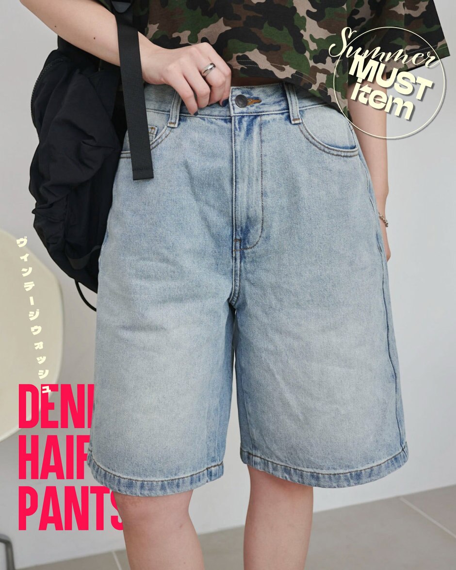 【SMサイズ展開】ヴィンテージウォッシュデニムハーフパンツ