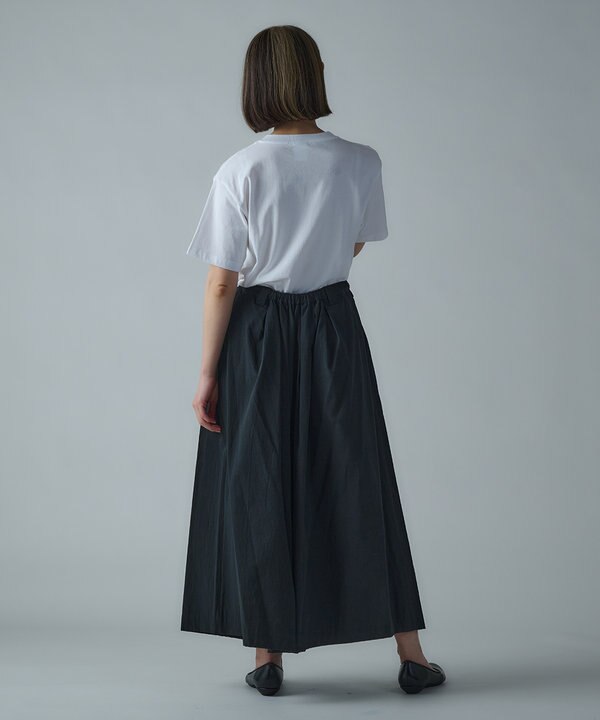 ウエストゴムは後ろにだけ入っているため、正面からはきちんとして見えます。お仕事でも履きやすいと思います。