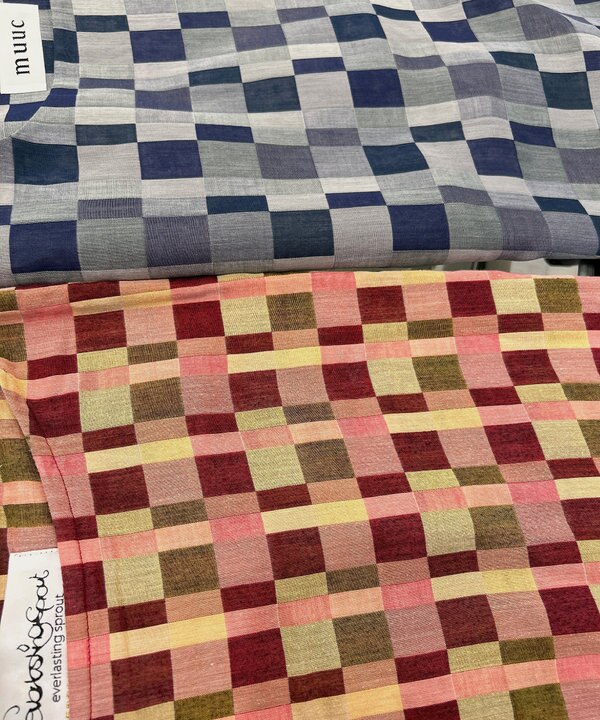異なる色糸で二重に織られているため、ただのチェック柄ではなく、色に奥行きがあります。実物をぜひご確認いただきたいです。