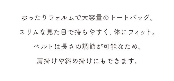 すっきりとしたスクエア型のトートは、スマートフォンがすっぽり入る大きめポケット付き。