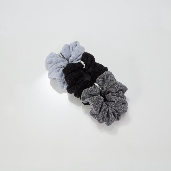 細かなラメが動くたびに煌めくグリッターシュシュ。