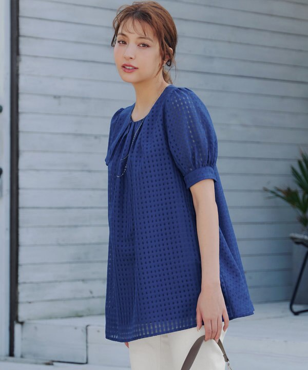 涼し気な印象のシアーチュニック。透け感のある生地を使っているので、暑さもへっちゃら。身頃には裏地をつけた安心設計!華やかロイヤルブルーは夏に映えるカラーでおすすめ。