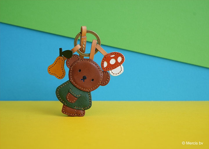 バッグにつけたとき、それぞれのポーズやモチーフに合わせ、きちんとかわいい角度になるよう絶妙なバランスで革ひもを配置しているのも隠れたポイントです。