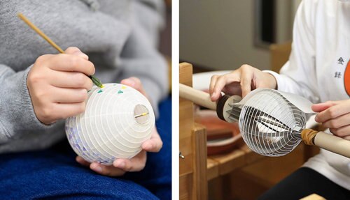火袋には、八女提灯の伝統技術を受け継ぐ職人による絵付け。