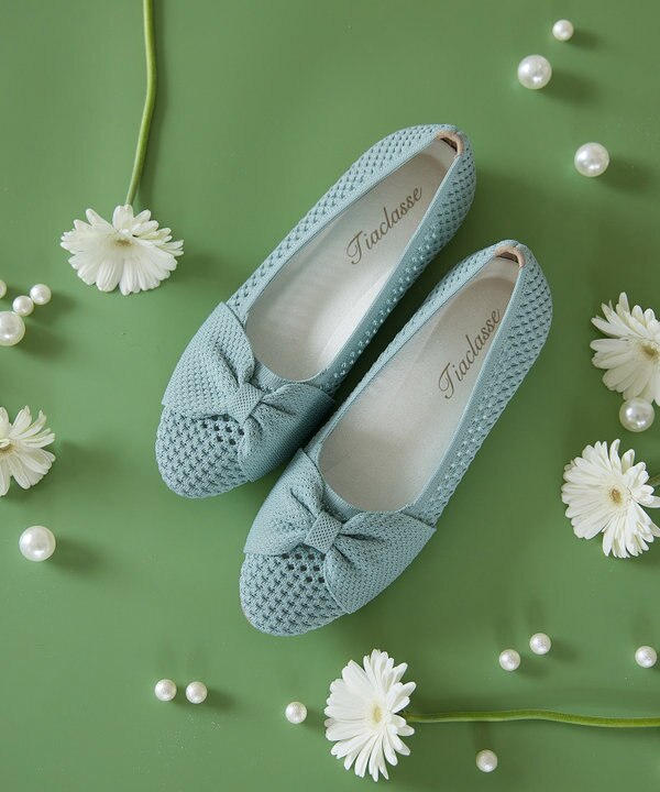 リボンが可愛い涼しげな透かし編みのパンプス!