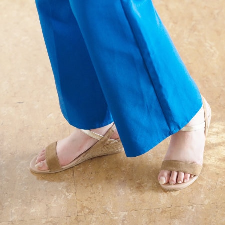 華奢なデザインながら足をしっかりホールドし、低めの歩きやすいウェッジヒールが魅力の1足。