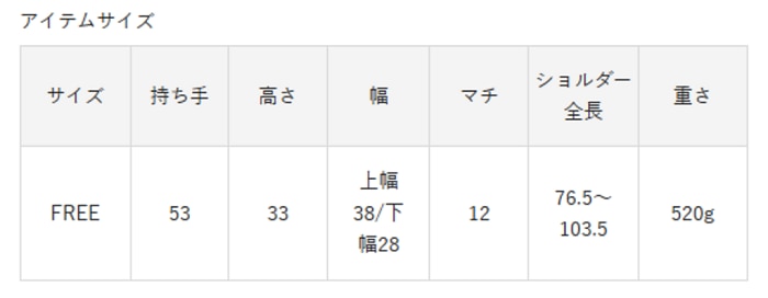 このバッグは重さ【520g】
