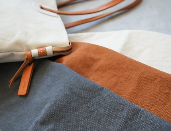 かつて船の帆として使われていたことからその名がついたといわれる帆布。鉄道貨物のシートや職人の道具袋など、“用の布”として暮らしに根付いてきました。高密度で織られた帆布は丈夫で長持ち、愛用を重ねるほどに風合いの変化が楽しめるのも魅力です。