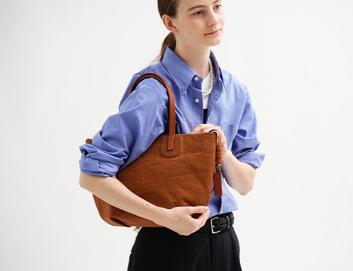 軽妙な帆布バッグながら端正さを備えた「ミモザグレース」をあなたの手へ。
