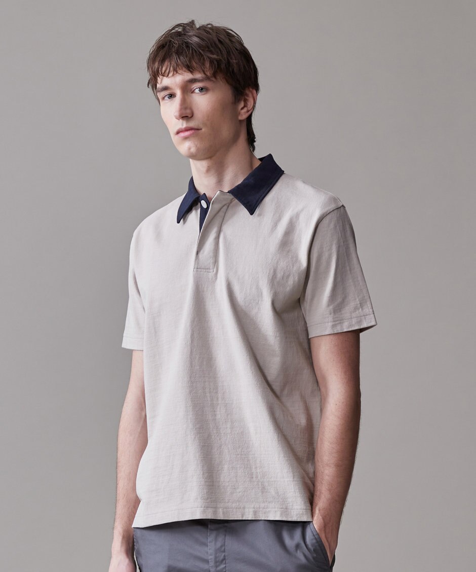 シンプルながら、表情豊かな生地感や、ボディと襟の配色など、