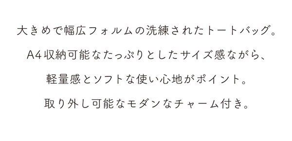 肩がけしやすいロングハンドルや、軽やかで柔らかな素材感で、ストレスフリーな持ち心地も魅力。