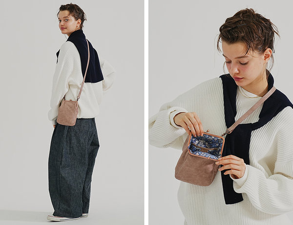 左から長財布(サンドピンク)34,100円(税込)、ミニポシェット(サンドピンク)30,800円(税込)