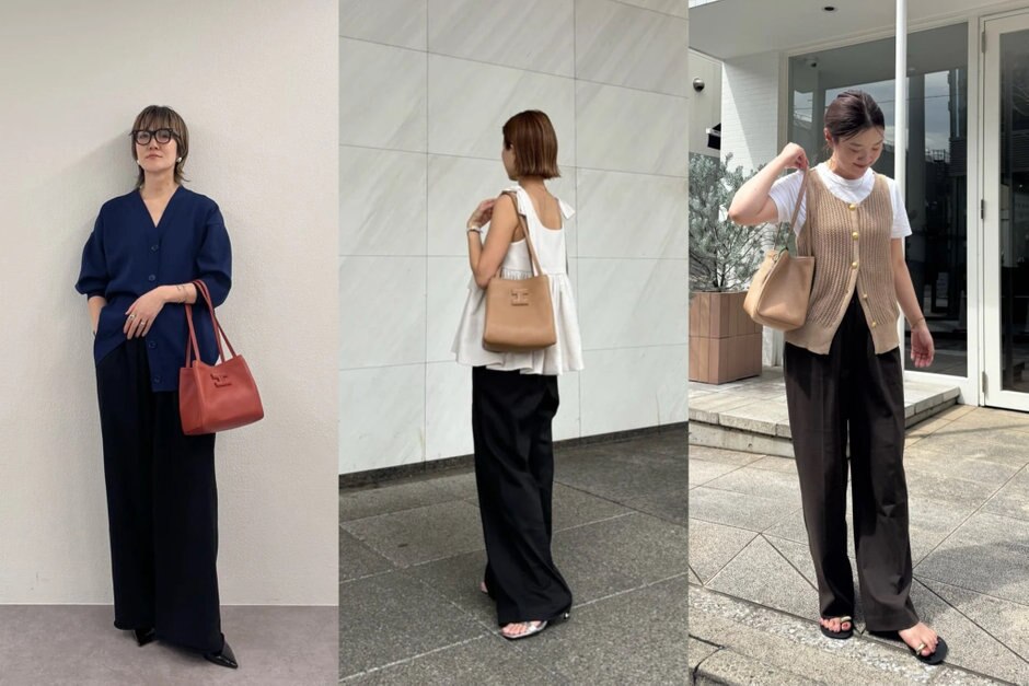 スクエアフォルムでボトルも入るほどの容量感はもちろんのこと、ハンドルが長く、シーズンが変わっても服のボリュームにかかわらず持ちやすいのが人気のひとつ。