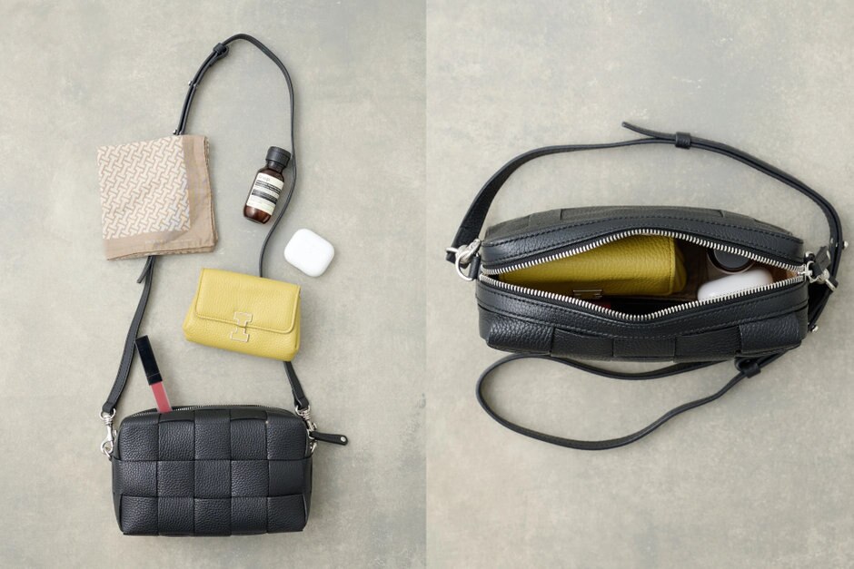 見た目のコンパクトさ以上の容量で、貴重品プラスαで通勤からプライベートまで幅広く使いやすいとスタッフからの人気も高い。