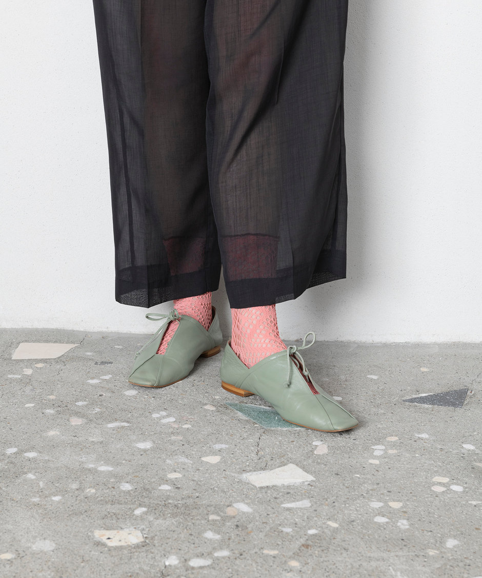 それを、タイツなどを作るためのホールガーメント機で編み上げることで、「シアー × ルーズ」という組み合わせを成立させた、TRICOTÉの技術革新アイテムです。