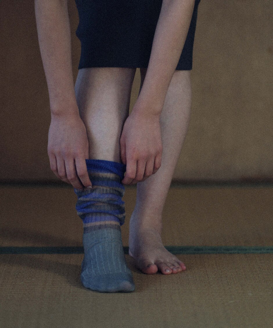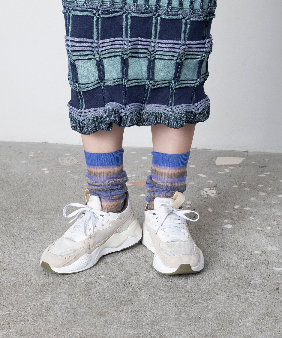 くしゅくしゅとたるませて履くスタイルはファッション性が高く、スニーカーにもぴったりです。2カラー展開 BLUE/BEIGE