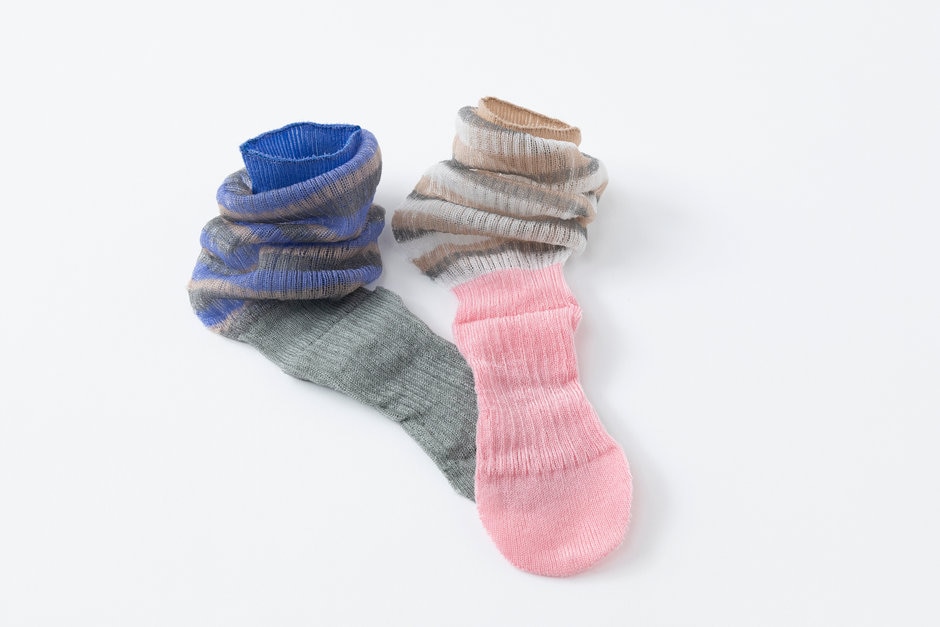 春夏らしいシアー素材とルーズなシルエットの組み合わせが新鮮な、今までにないデザインのボーダー柄ソックス。本来、ソックスの製法技術的には、シアー素材のルーズソックスを作るのが難しいとされています。