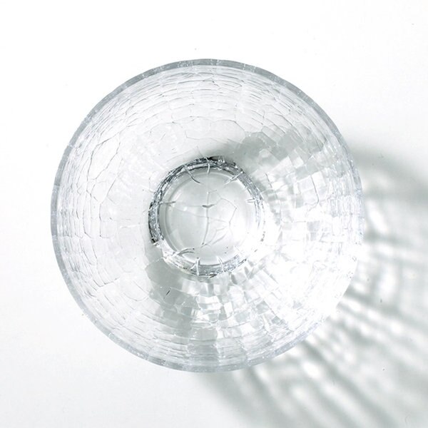 クリスタルガラスは硬く丈夫なため、グラスの厚みを薄く仕上げることができます。さらにヒビ模様が入ったグラスは多く見かけますが、口縁まで入れられる技術は他ではなかなかありません。