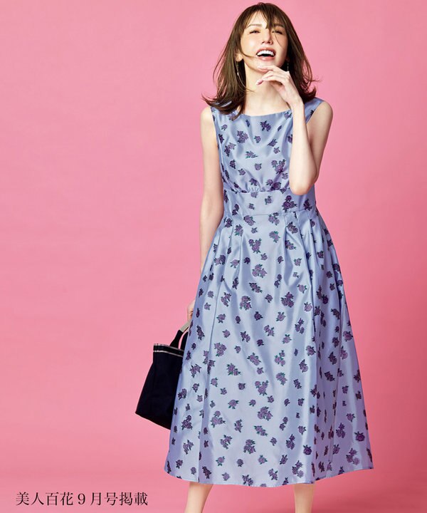 小さなローズを散りばめたジャカード生地を、TOCCAらしい王道シルエットに仕上げました。