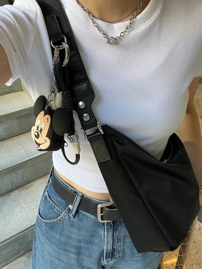 「ナイロンショルダーベルト」にはチャームを付けられる金具がついているので、 好きなチャームをつけて自分だけの”オリジナルバッグ”にできるのも嬉しいポイント。