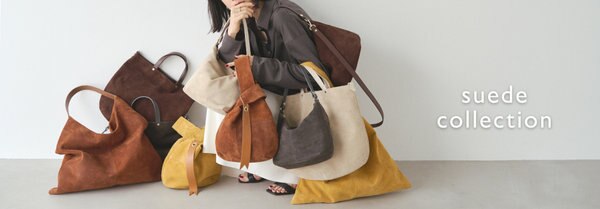 薄マチですっきりと持てるところが人気のデザインのスエードタイプ。