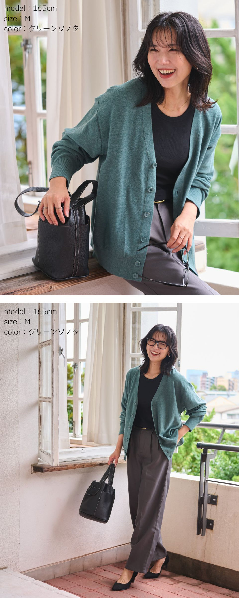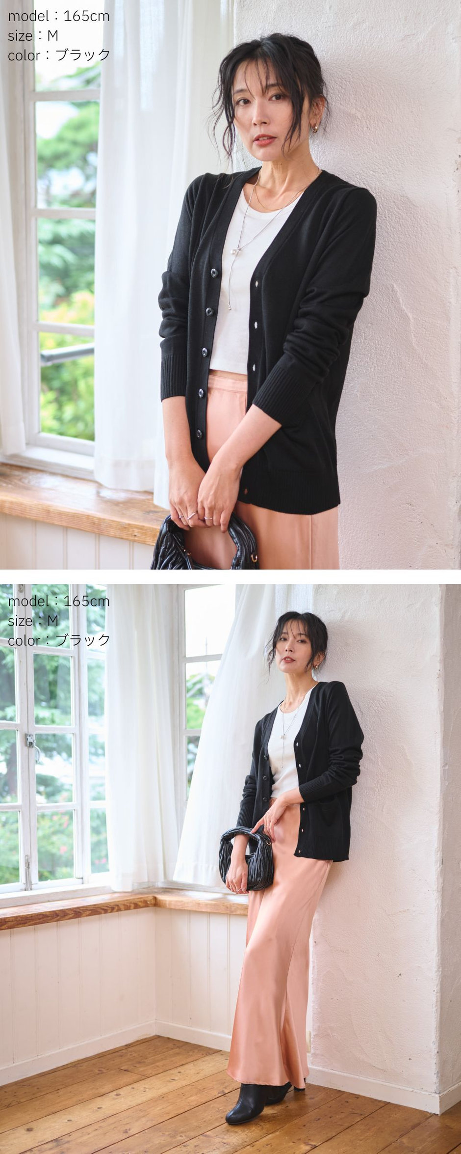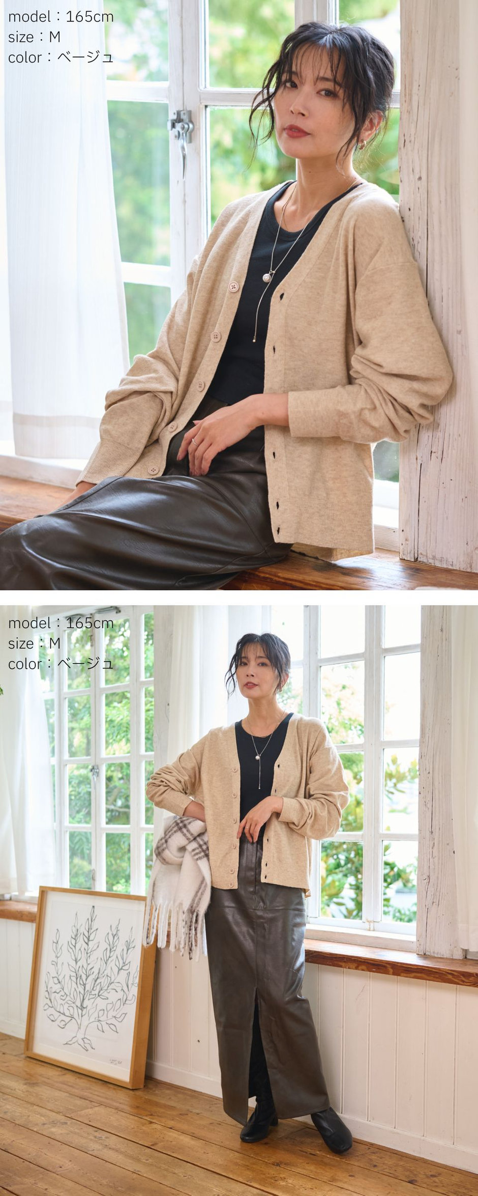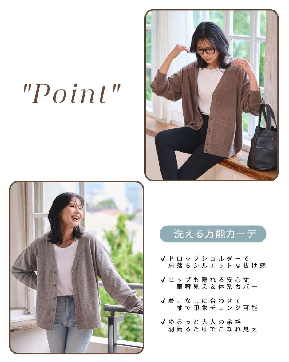 さらっと羽織るだけでこなれた印象に仕上がるドロップショルダーカーデと、