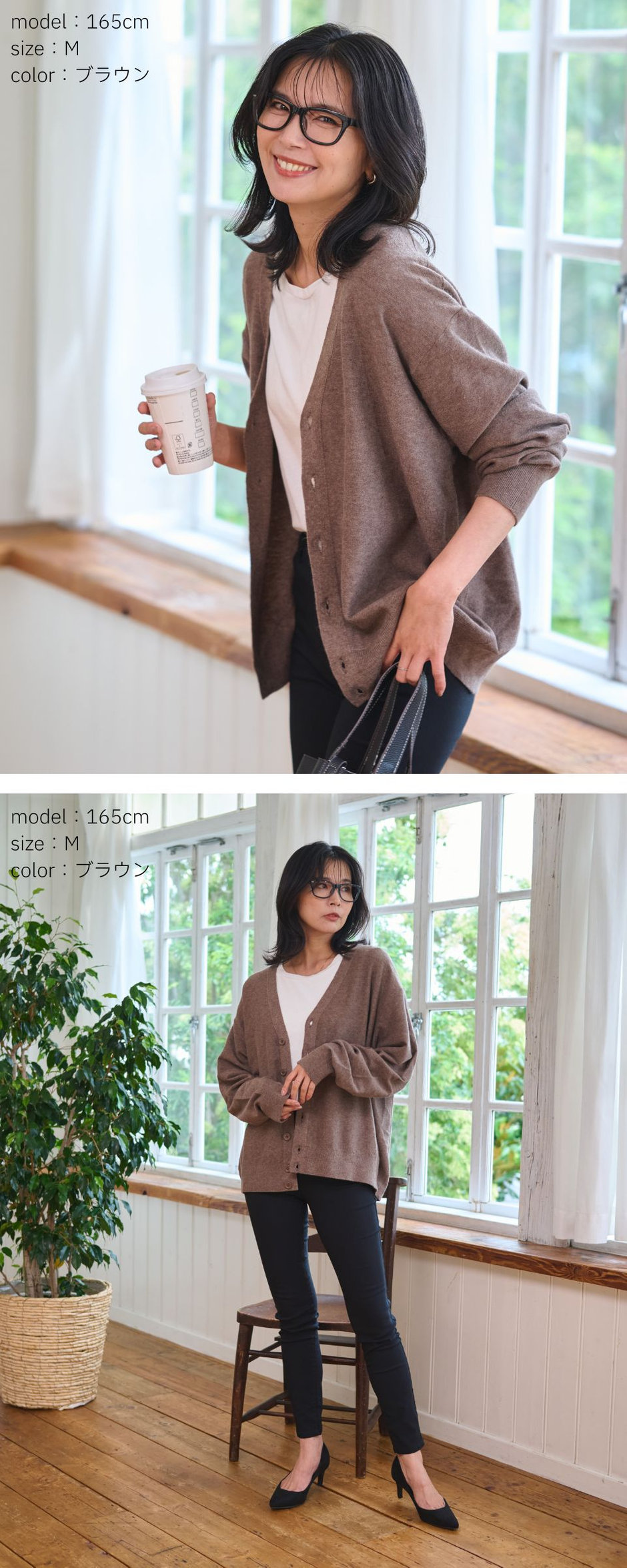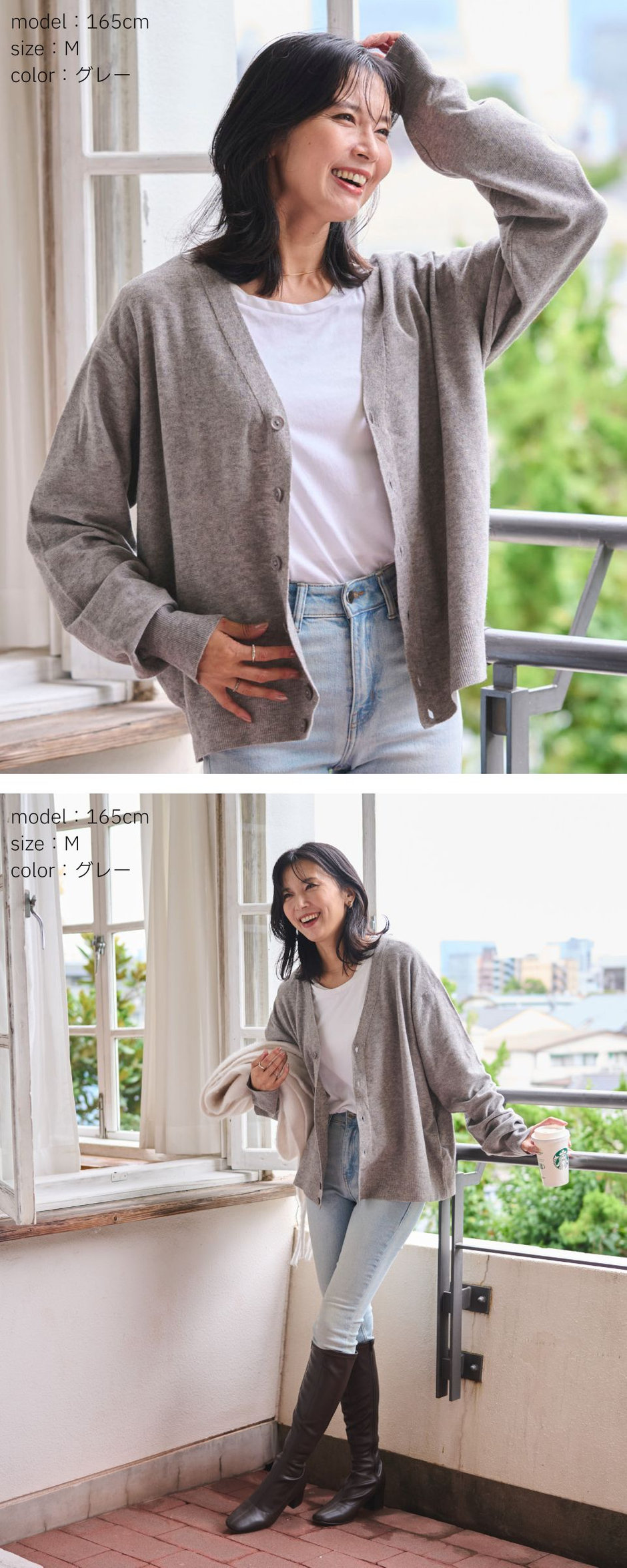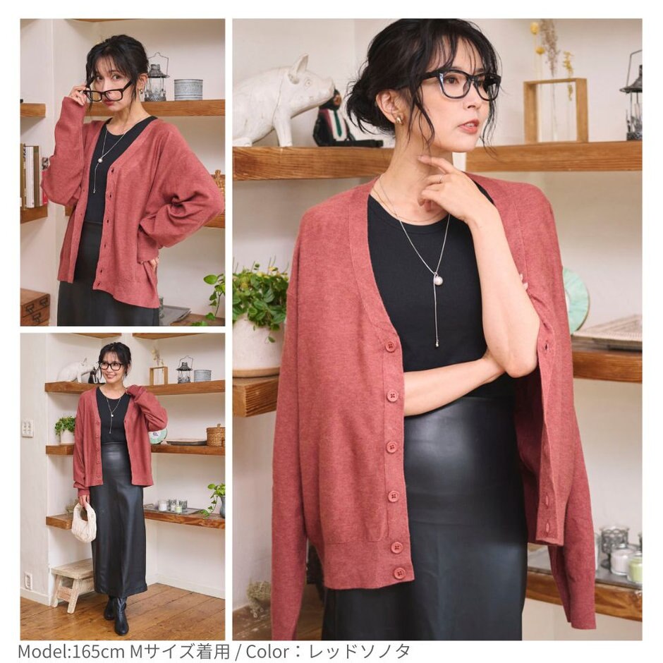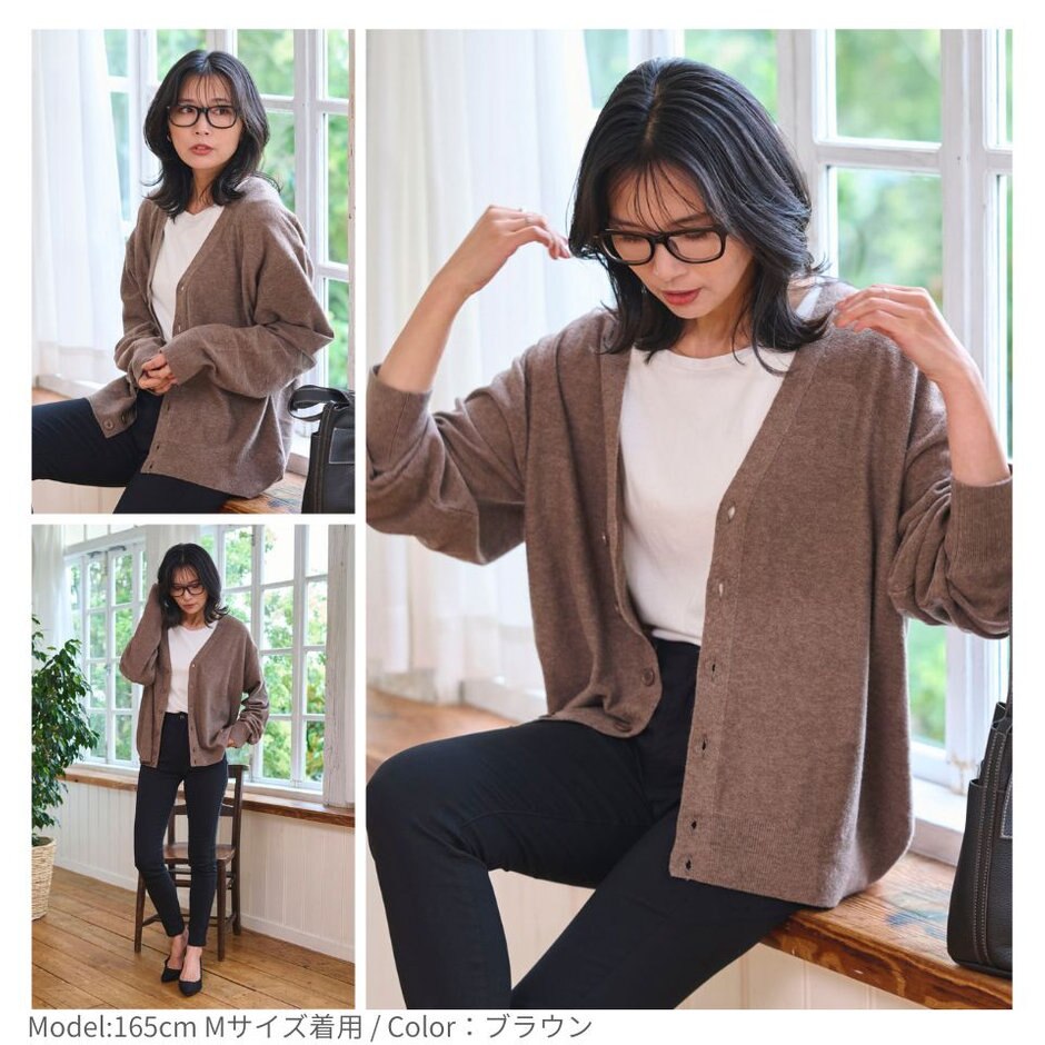 ゆるっと羽織れる落ち感シルエットが魅力のドロップショルダーカーディガン。