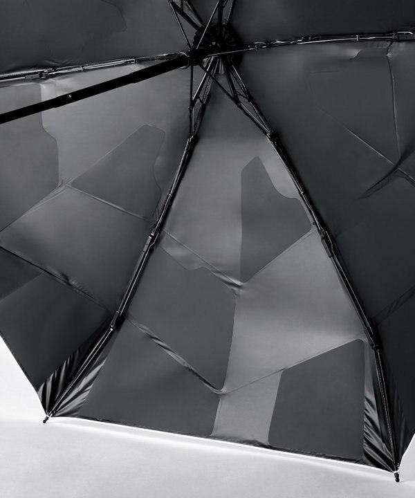 傘の裏側に貼られたPET樹脂素材の特殊シートがガイドの役割を果たし、