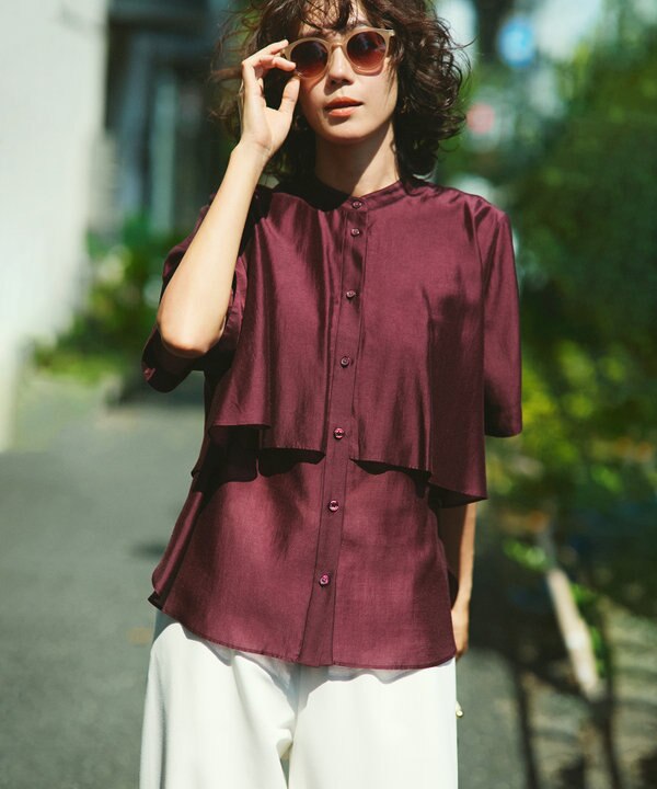 こっくりバーガンディなのに透ける。そんなディープカラーとシアー素材の新鮮な矛盾。それが暑い秋に”しっくりちょうどいい服”。