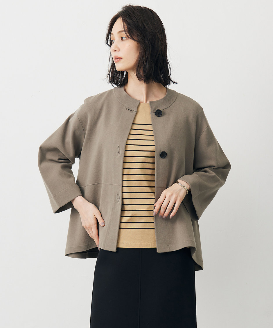 中間アウターとして活躍する、軽やかで着やすいニットジャケット