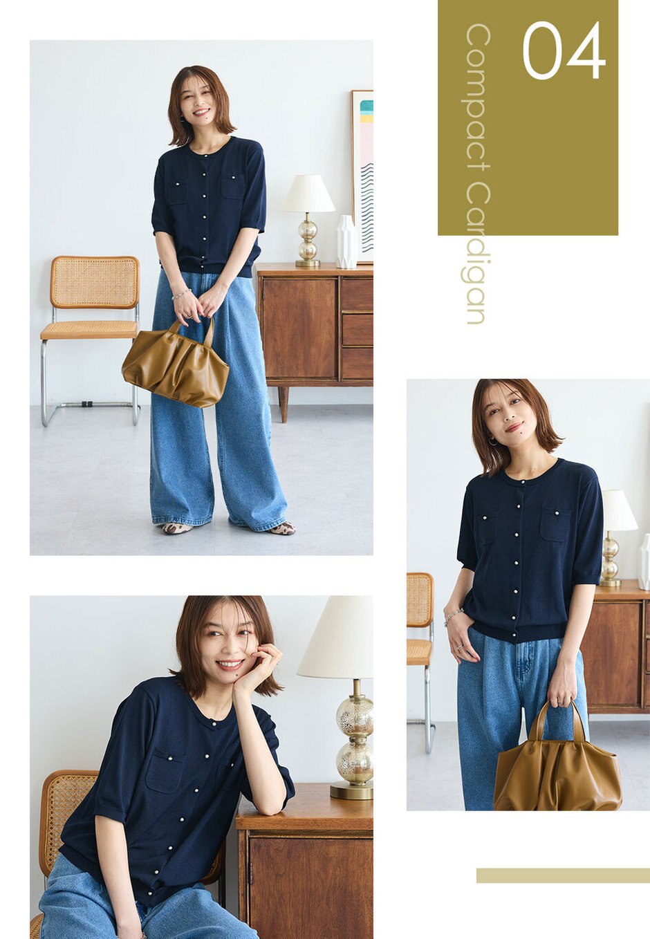 肌触りのいい柔らかなニット素材のカーディガン。コンパクトすぎないシルエットが暑い日にも着やすいポイント。上品なデザインでデニムコーデでもきれいめな印象に。合わせた秋小物がぐっと季節感を演出します。