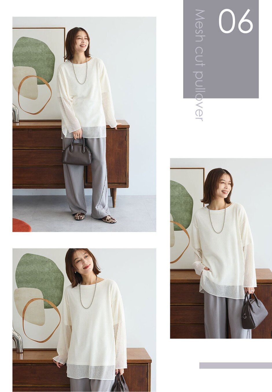 メッシュ長袖ゆるカットプルオーバー
