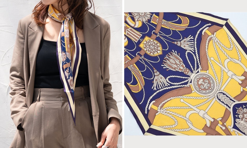 【Marcaオリジナル】バイカラーベルト シルクツイル 菱形スカーフ