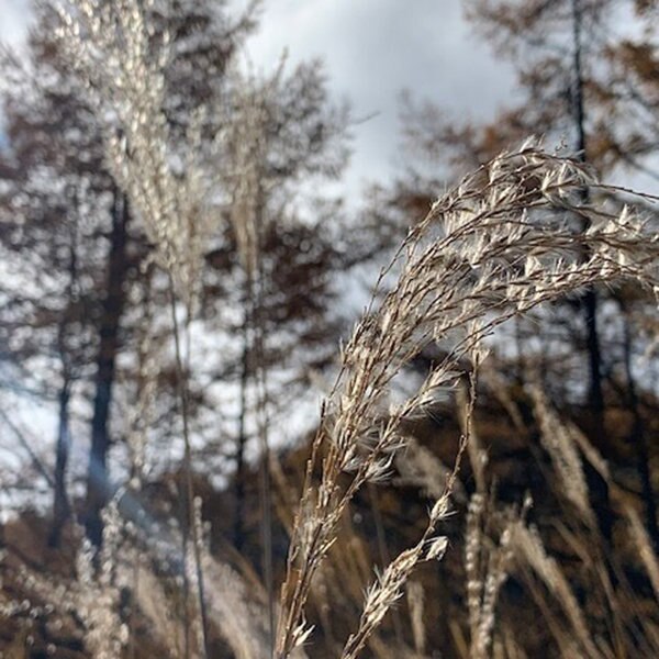 陽が差して銀色に輝く一面の花穂や