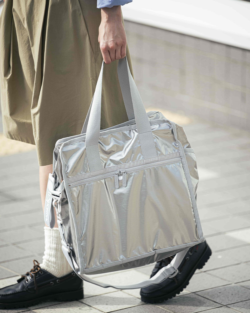 手持ち、斜めがけができる2WAY仕様のトートバッグ。