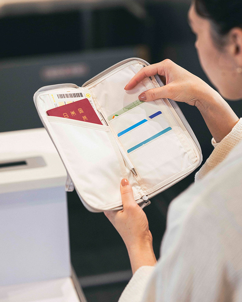 パスポートにボーディングパス、交通系ICカードなど、旅に必要なものが全部収納できる機能性の高いマルチトラベルウォレット。