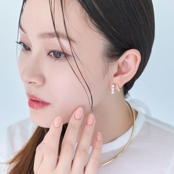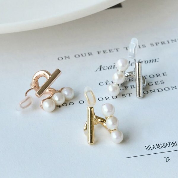 華奢なストレートラインと、縦に並べた3粒のパールがジュエリーライクなアイテム。